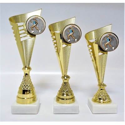 Akrylátový motiv 0.4 cm. V ceně trofeje není zahrnuta cena štítku. Výšky trofejí jsou orientační. Zlatá trofej 33cm, stříbrná trofej 30cm, bronzová trofej 27cm. Oboustranný...