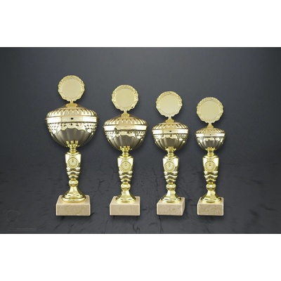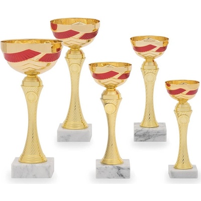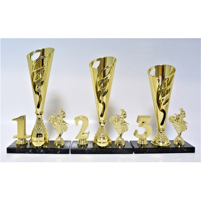 390-P437.01. Poháry s pořadím. Výška pohárů je uvedena za lomítkem katalogového čísla. Velikost mramorového podstavce je 20 x 9 x 2 cm. Při nákupu jedné sady...