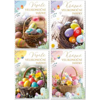 Pohlednice s velikonočním motivem. Text na zadní straně obsahují 4 pohlednice z 6. Text na přední straně: Krásné Velikonoce, Veselé Velikonoce Text na zadní...