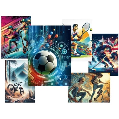 Pohlednice s motivy různých sportů. Pohlednice jsou bez textu na zadní straně. Text: 0/6 Povrchová úprava: UV lak Papír: pohlednicový karton 240 g Uvedená cena je za 1...