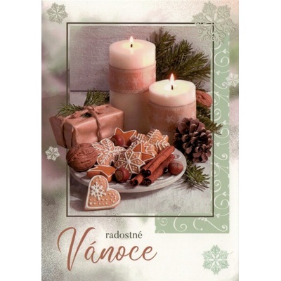 Uzavíratelná pohlednice s dekorativním panelem v tématu vánočního přání.