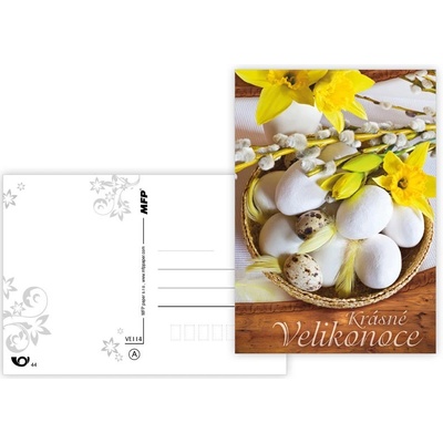 Pohlednice s velikonočním motivem. Papír: pohlednicový karton 240 g. Povrchová úprava: UV lak. Rozměr: 105 mm x 149 mm x 1 mm (Š x V x H).
