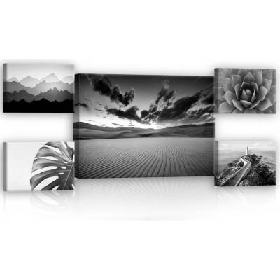Set pěti obrazů na plátně. Set se skládá z jednoho obrazu na plátně s rozměry 70cm (šířka) x 50cm (výška) a zbývajícími čtyřmi obrazy s rozměry 32,4cm (šířka) x 22,8cm...