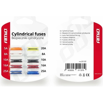 Obsah balení:1x 5A, 2x 8A, 2x 10A, 2x 16A, 1x 20A, 2x 25A