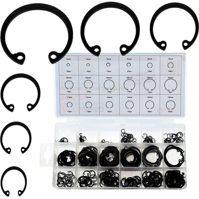 Pojistné kroužky na hřídele, tzv. vnější seegrovky, sada 300 kusů v plastové krabičce – ASTA A-TC506 Různé, často používané i méně obvyklé rozměry. Určeno k montáži pomocí...