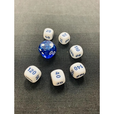 Sada sedmi kostek z Elite trainer boxu Pokémon GO. Kostky se mohou používat například na počítání životů při hře.
