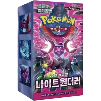Pokémon Scarlet and Violet Night Wanderer Booster Box v korejštině obsahuje 30 booster balíčků po 5 kartách. Celkem tak získáte 150 karet. Night Wanderer je temně-laděná...