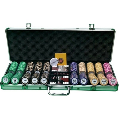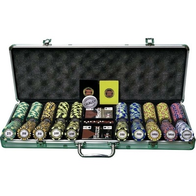 Profesionální sada Elite Pro 500 s 10g keramickými číslovanými žetony v 7 barvách, 2 balíčky plastových karet, kostkami a blind žetony. Dodáváno v uzamykatelném hliníkovém...