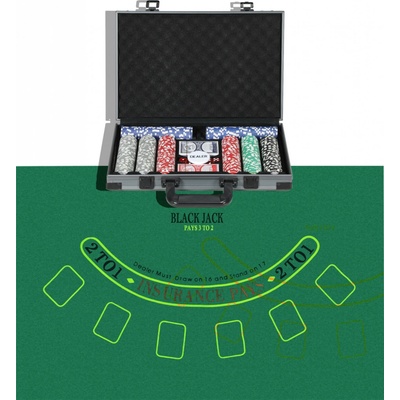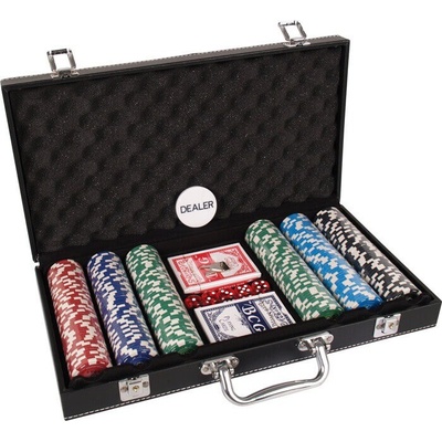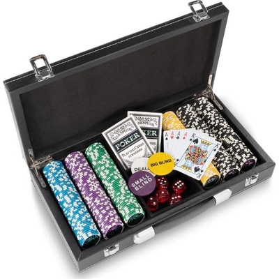 - 2 balíčky pokerových hracích karet - 5 ks kasino kostek - 3x žeton: Dealer, Big Blind, Small Blind - 300 ks kasino žetonů 11,5 gr, s laserovým polepem a uvedenými...