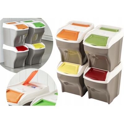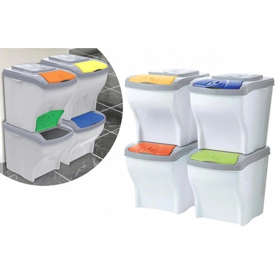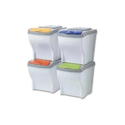 Dokonalá sestava čtyř plastových košů o jednotlivém objemu 27 L s barevně odlišenými víky pro třídění odpadů vám velmi usnadní třídění odpadů na malém prostoru a pomůže k...