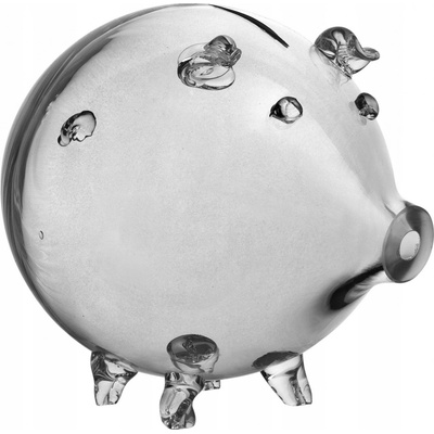 Skleněná pokladnička Prasátko Velké Skleněná prasátko pokladnička velká. Pokladnička z odolného čirého skla ve tvaru prasátka. Má dokonale zmapované nohy, ocas, uši, oči a...