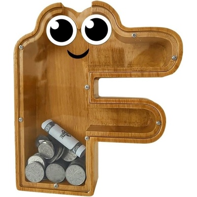 Pokladnička dřevěná - Písmenko F - Udělejte šetření zábavou pro vaše děti! Nálepky jako oči jsou dodávány samostatně a nemusíte si je lepit. Na plexiskle je ochranná fólie...