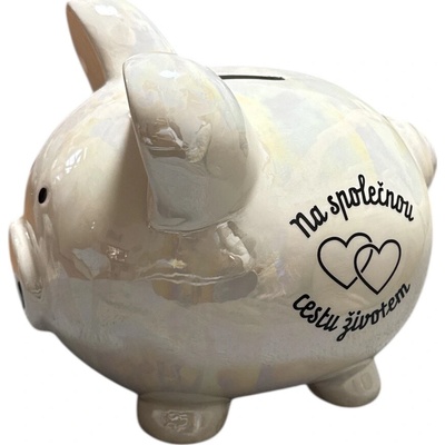 Pokladnička prase Spořte s láskou! Tahle roztomilá kasička ve tvaru prasátka s nápisem „Na společnou cestu životem“ je dokonalým symbolem vašich společných plánů a...