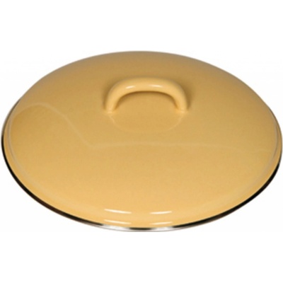 Smaltovaná poklice s chromovým okrajem pasuje na nízký i vysoký hrnec stejné žluté barvy.