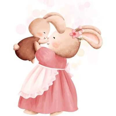 Dětský plakát 'Králičí maminka se synem' z kategorie obrázky pro děti zobrazuje králičí maminku s jejím synem v náručí. Tento veselý plakát je kreslený ve stylu akvarelových...