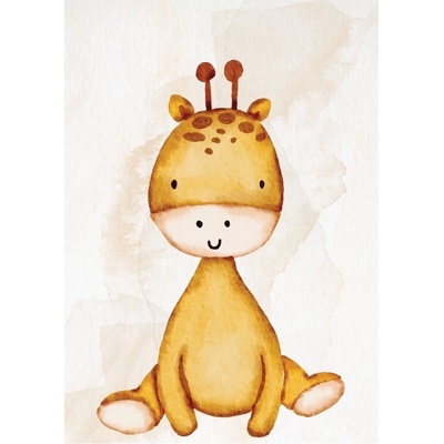 Dětský plakát 'Mládě žirafy' z kategorie obrázky pro děti zobrazuje malou roztomilou žirafu na béžovém pozadí. Plakát je kreslený, ve stylu akvarelových barev. Dětské obrázky...