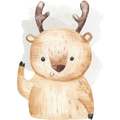 Dětský plakát 'Pozdrav malého jelena' z kategorie obrazy pro děti zobrazuje mávajícího malého jelena ve stylu akvarelu. Dětské obrázky zútulní každý pokojíček a pomohou rozvíjet...