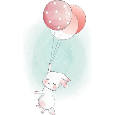Dětský plakát 'Králík v letu' z kategorie obrázky pro děti zobrazuje malého králíka s létajícím balónkem. Plakát je kreslený, ve stylu akvarelových barev. Dětské obrázky rozzáří...