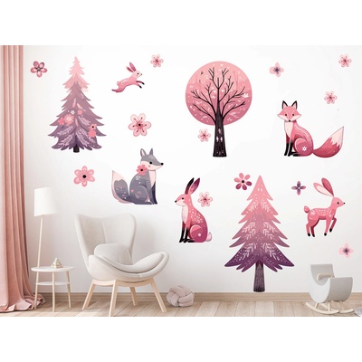 Samolepky se zvířátky do holčičího dětského pokoje vytvoří jemnou pohádkovou atmosféru plnou klidu, fantazie a něhy. Roztomilé lesní motivy v růžových a pastelových tónech...