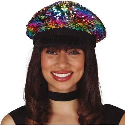 Karneval doplněk - třpytivá čepice s v duhovém provedení. Skvěle doplní maškarní kostým policie nebo na stylovou duhovou PRIDE párty. Dospělá velikost