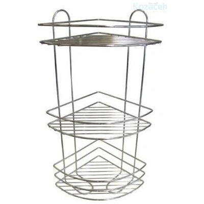 Drátěná rohová třípatrová polička je vyrobená z pochromované oceli.