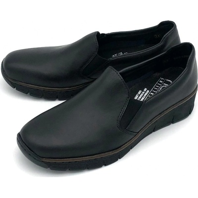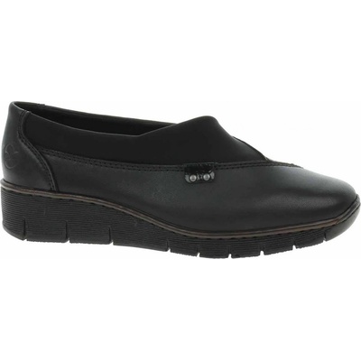 Boty Rieker - flexiblové dámské mokasiny se svrškem i stélkou z usně a s textilní podšívkou jsou na nártu vybavené pro pohodlné nazouvání pružnou softshellovou textilií. Klínek...