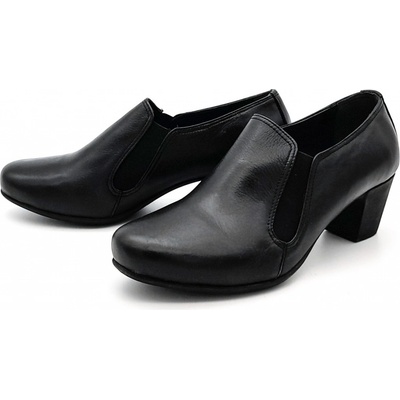 Dámské polobotky, vyrobené z hladké kůže. Vnitřek obuvi je rovněž kožený. Snadné nazouvání zajišťují elastické vsadky na obou stranách obuvi. - výška podešve pod patou: 5 cm...