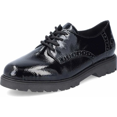 Tyto boty RIEKER jsou skvělým doplňkem, který nejen potěší vaše oči, ale také vaše nohy. Černý svršek s lesklou úpravou, perforovaným vzorem a logem značky vytváří botám...