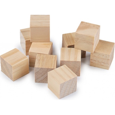 Menší dřevěné kostky poslouží ke kreativnímu tvoření. Jsou z přírodního dřeva bez laku. Můžete je domalovat dle vlastní fantazie a vytvořit si tak vlastní puzzle, hrací kostky...