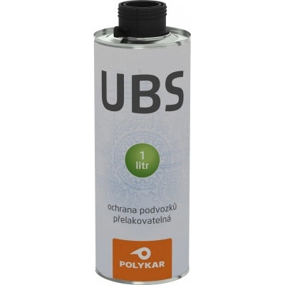 Polykar UBS, nástřik na spodek - na ochranu podvozků a prahů aut. Přelakovatelný prostředek na ochranu podvozků a prahů aut vyroben na bázi syntetických pryskyřic. Tvoří silnou elastickou vrstvu chránící proti abrazivnímu působení posypových materiálů, účinkům