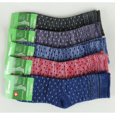 Dámské zdravotní bavlněné termo ponožky. Ponožky mají zdravotní lem Materiál 85% bavlna 10% polyester 5% elastan. Prát na 40°C Ponožky jsou dodávány se vzorem dle aktuální...
