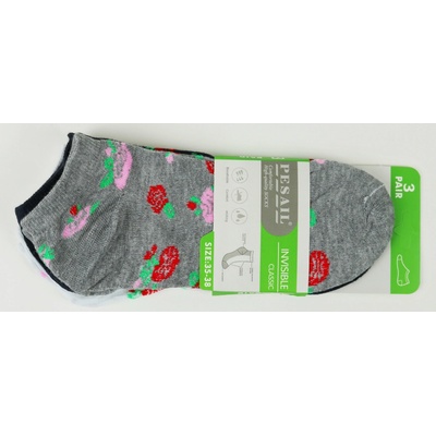 Dámské bavlněné kotníkové ponožky Počet kusů v balení: 3 páry Materiál: 80% bavlna 15% polyester 5% elastan Ponožky jsou dodávány se vzorem dle aktuální skladové...