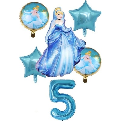 Balení Popelka - Cinderella obsahuje : - 1x fóliové číslo modré barvy, 86 cm - 1x fóliový balónek Popelka, růžový, 84x71 cm - 2x fóliový balónek hvězda modrá, 45 cm -...