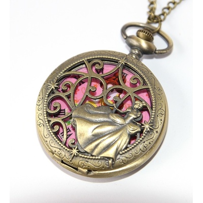 Nádherné, bronzové hodinky s otevíracím předním krytem, ve kterém je znározněna princezna, obklopená zdobenými vzory ♥ Uvnitř se na nás usmívá kráska z růžového pozadí,...
