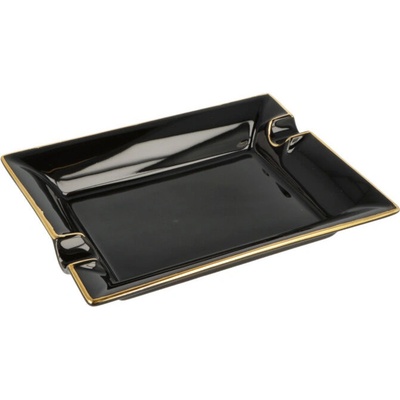 Doutníkový popelník na 2 doutníky. Obdélníkový keramický popelník v černé barvě je zdobený zlatou linkou. Díky leskle glazurovanému povrchu má hladký povrch, který přispívá ke...