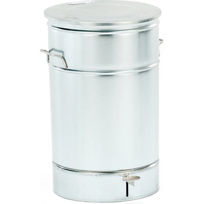 Kovová popelnice o objemu 70 l s víkem a madly. Vyrobeno z kvalitního pozinkovaného ocelového plechu. Stohování po 4 nebo 5 ks. Vybaveno gumovou obručí na spodní části – snížení hlučnosti při manipulaci. Závěsy pro vyklápění odpovídají normě DIN 6629. Síla plechu: 0,8...