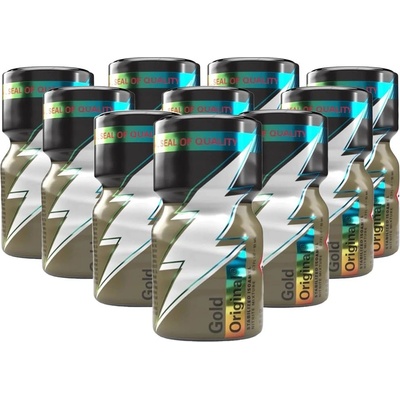 Gold Original poppers, balíček pěti za zvýhodněnou cenu. - výrobek obsahuje 10 ml: Amyl nitrit – směs izomerů - UFI: MG7T-F0Q9-800V-N20T - uchovávejte na chladném, dobře...
