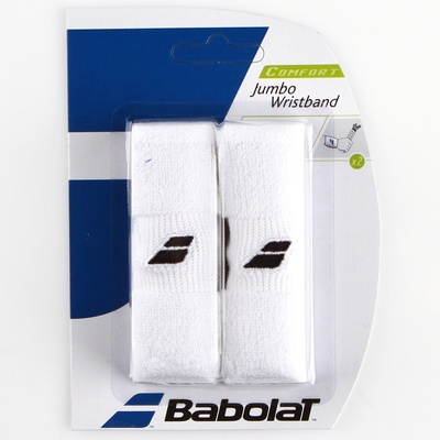 Potítka Babolat Wristband jumbo jsou široká 10 cm. Vyšité nové logo Babolat. Super savé. Materiál: 80% Bavlna, 15% Nylon, 5% Elastan Barva: Bílá / černá Balení: blistr / 2 kusy