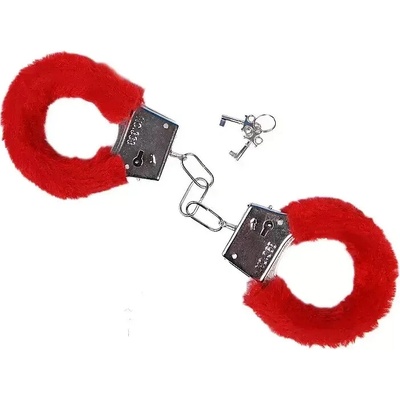 Kovová pouta s červeným kožíškem. Plyšová červená pouta s dvěma klíčky budou vtipným doplňkem na různé párty, například na oslavě 18. narozenin, sexy párty nebo na rozlučce se...