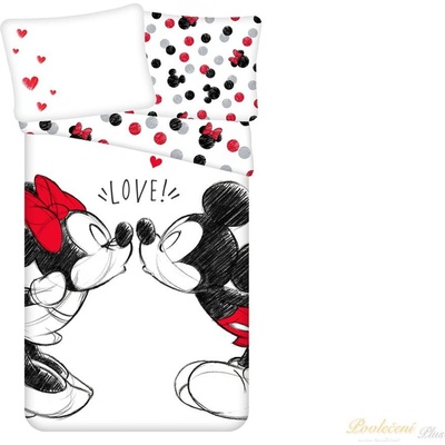 Myška Minnie a Mickey v zajetí lásky\nBavlněné povlečení Minnie a Mickey Mouse Loveje vyrobeno ze 100% hladké bavlny renforceToto oboustranné povlečení má rozměry peřiny 140x200 cm a polštáře 70x90 c