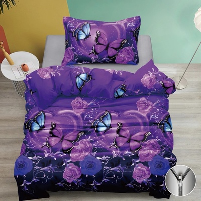 Krepové povlečení - motýl a růže Dvoudeka 220x270