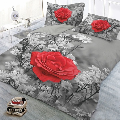 Šedé povlečení s červenou růži pro romantické ložnice Dopřejte své posteli květiny, které nikdy nezvadnou. 3D povlečení RŮŽE 4 krásně vynikne se šedým podkladem plným drobného...