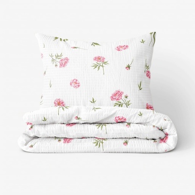 Povlečení s motivem květů pivoněk vytvoří uvolněnou atmosféru ve vaší ložnici. Je ušito ze 100% měkčené bavlny o gramáži 145 g/m2. Podkladem povlečení je bílá barva. Ušité s...