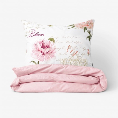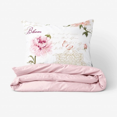 Vzor růžových pivoněk, motýlů, ornamentů a psaných textů promění vaši ložnici v místnost klidu a odpočinku. Doplňte si vaši ložnici o toto bavlněné povlečení. Podkladem...