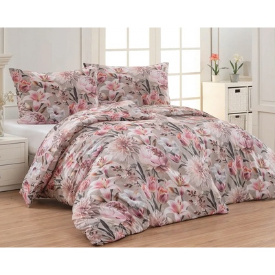 Bavlněné povlečení se vzorem lilií, pivoněk, tulipánů, ibišků a aster v růžových barvách. Povlečení je z obou stran stejné. Souprava je vyrobena ze 100% bavlny a obsahuje povlak...