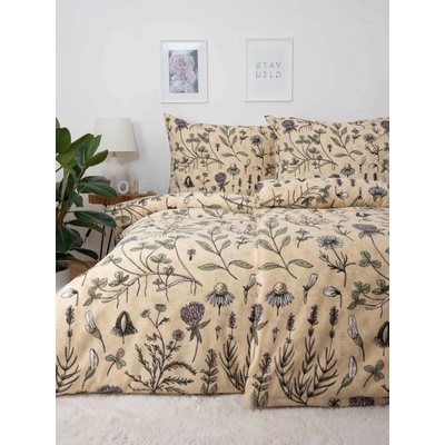 Luxusní flanelové povlečení 140x220 prodloužené. Teplé povlečení na zimu ze 100% česané bavlny. Design povlečení Povlečení zdobí jemný květinový motiv v přírodních tónech...