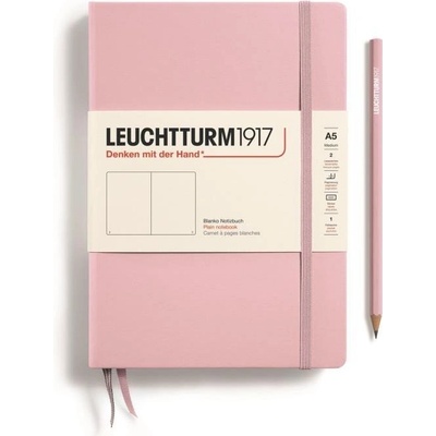 Medium A5: 145 x 210 mm Pevná vazba: 251 stran Papír: 80 g/m2 Hmotnost: 423 g Detaily: • 2 látkové záložky • Prázdný obsah a očíslované stránky • Všitá zadní kapsa • Elastický...