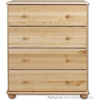 Stylová a zároveň praktická komoda KD110 je vyrobena z masivního dřeva borovice a nabízí čtyři prostorné zásuvky, ideální pro uložení prádla, ložního textilu nebo dokumentů....