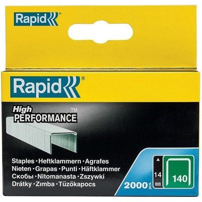 Sponky RAPID High Performance 140/14 mm - balení 2000 ks Sponky jsou vyrobeny z vysoce kvalitní pozinkované oceli a jejich nohy jsou přesně řezané pro optimální průnik. Extra...