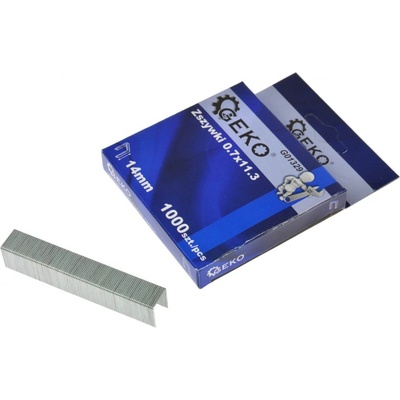 Sponky 0,7x11,3x14mm, 1000ks GEKO Spony 14x11,3 mm z galvanizované oceli. Perfektní pro truhlářské a čalounické práce. Technické specifikace - Délka: 14 mm - Šířka: 11,3...